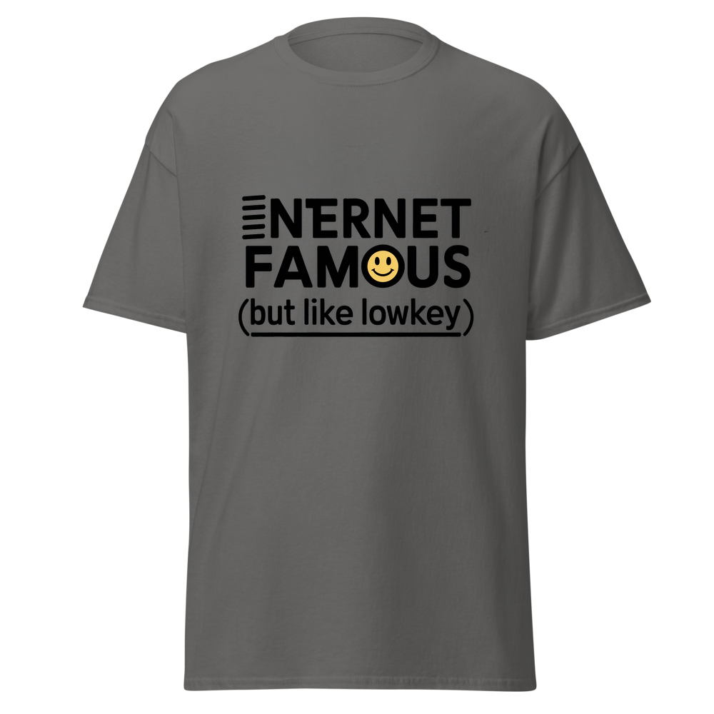 A stylish design featuring a half-hidden smiley face emoji and a WiFi signal icon. Perfect for teens who love a subtle nod to their online fame. Ideal for anyone who enjoys internet culture and wants to keep it low-key.This t-shirt is everything you’ve dreamed of and more. It feels soft and lightweight, with the right amount of stretch. It’s comfortable and flattering for all. 100% combed and ring-spun cotton (Heather colors contain polyester) Fabric weight: 4.2 oz./yd.² (142 g/m²) Pre-shrunk fabric Side-seamed construction Shoulder-to-shoulder taping